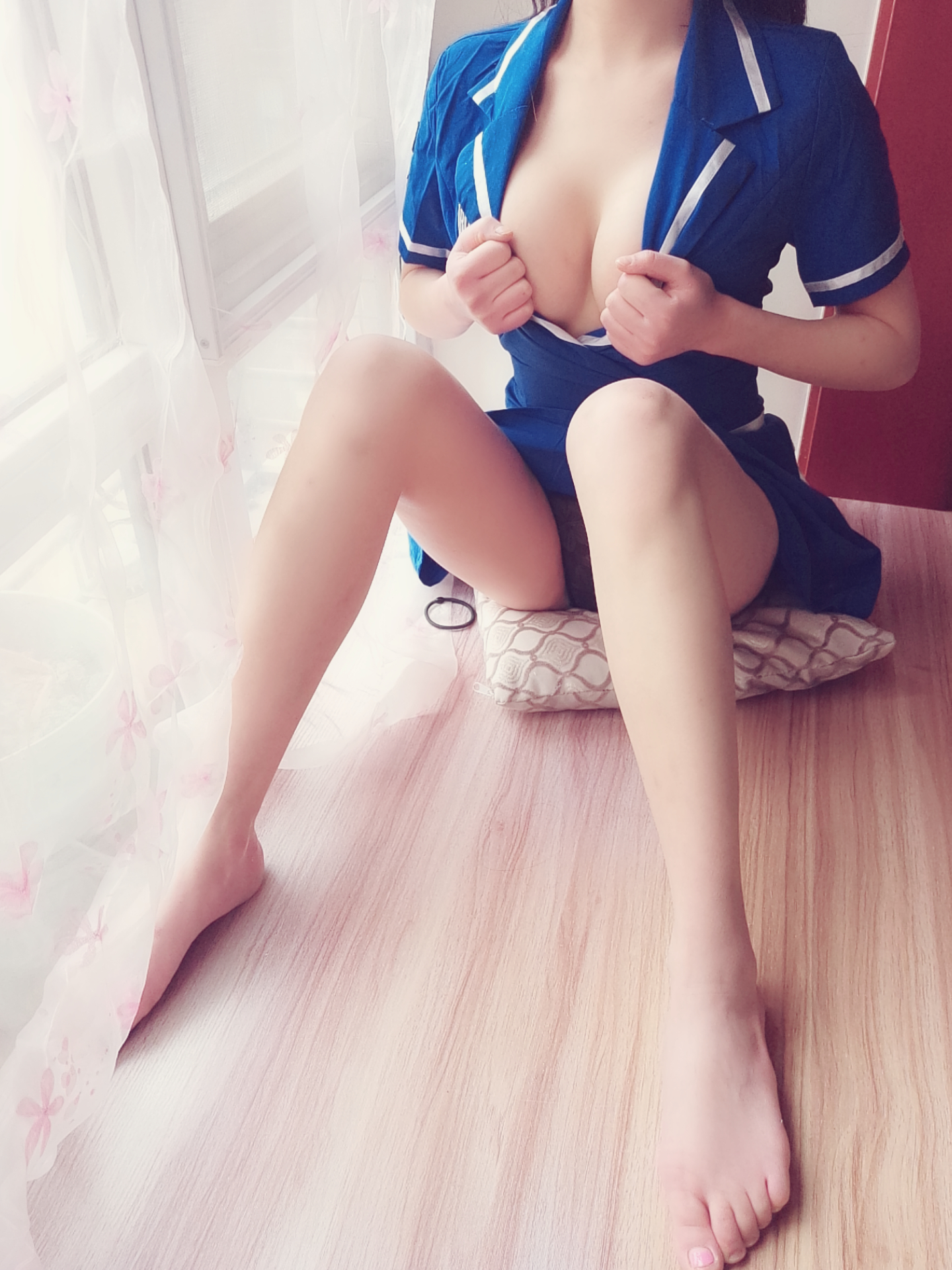 萌白酱福利—蓝色毛衣