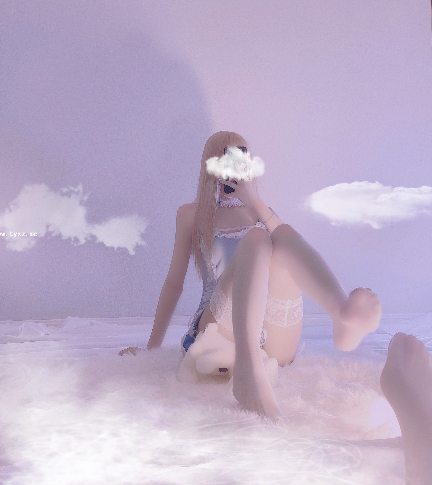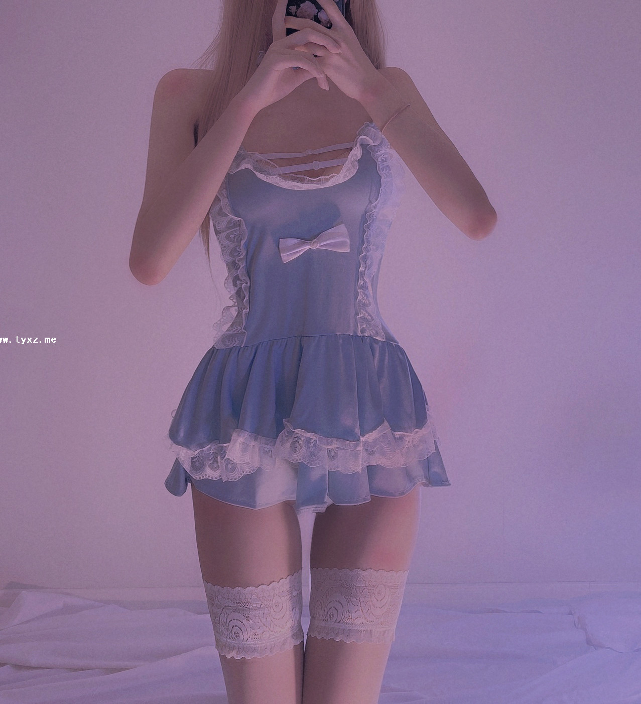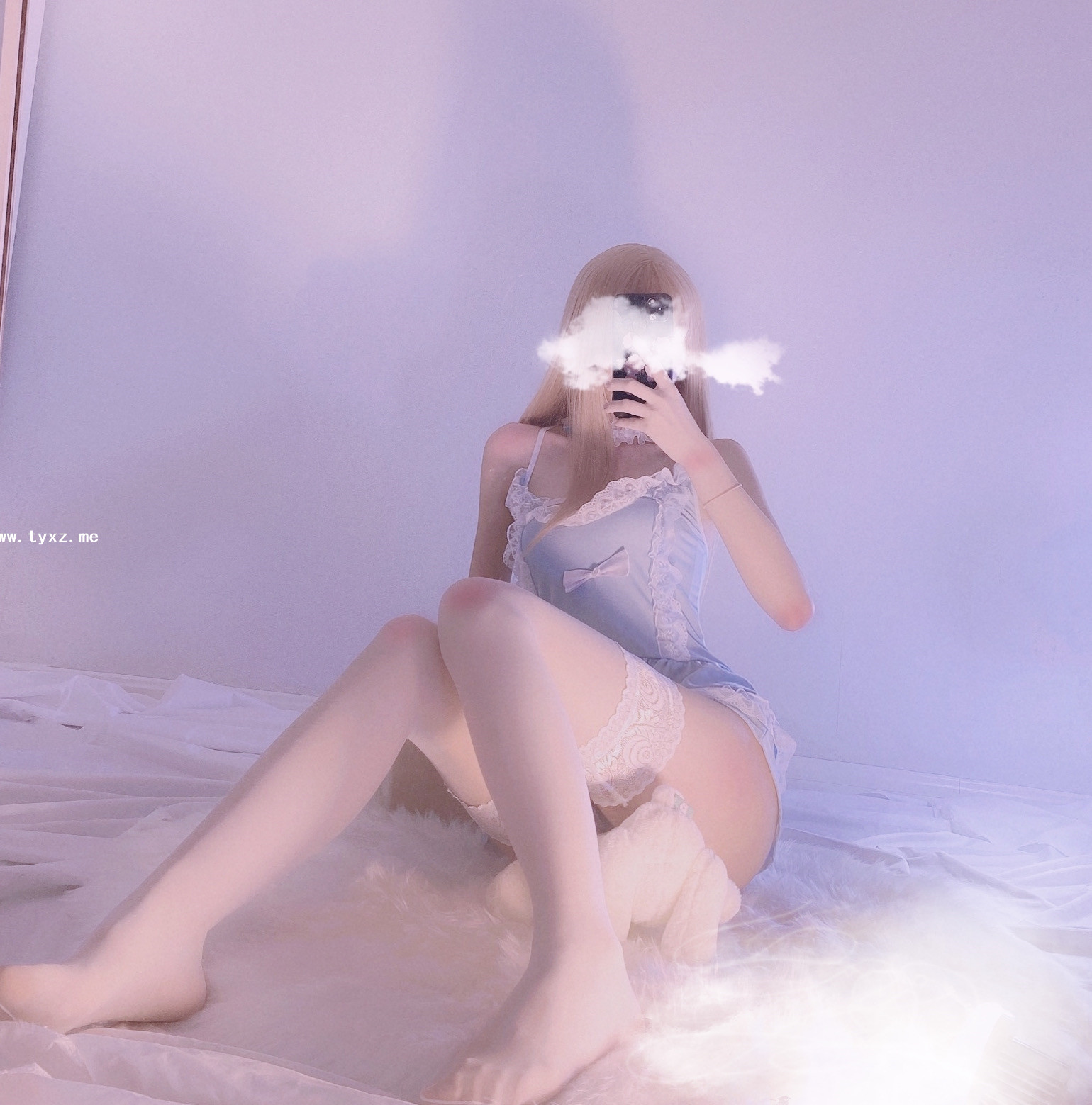 萌白酱福利—蓝色毛衣