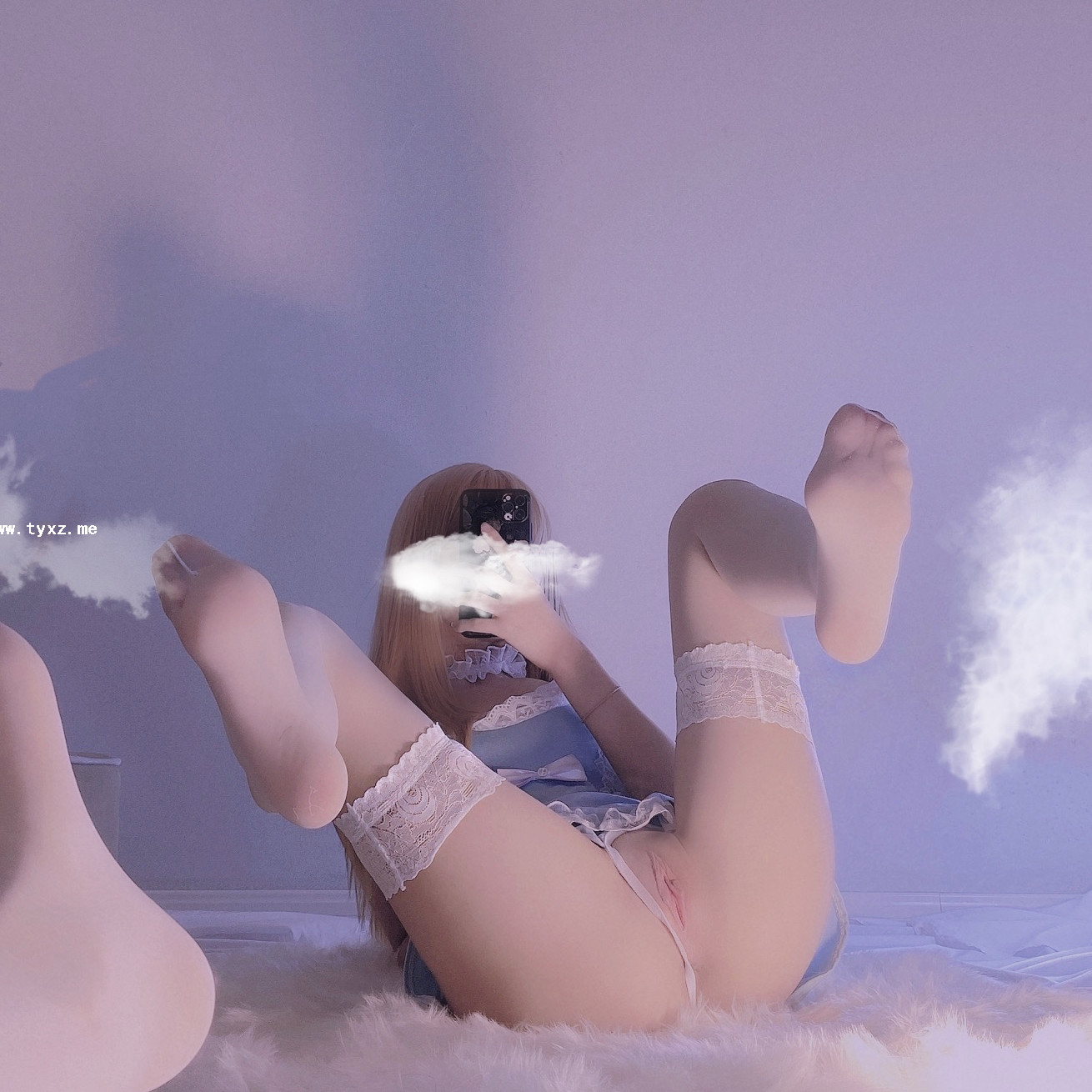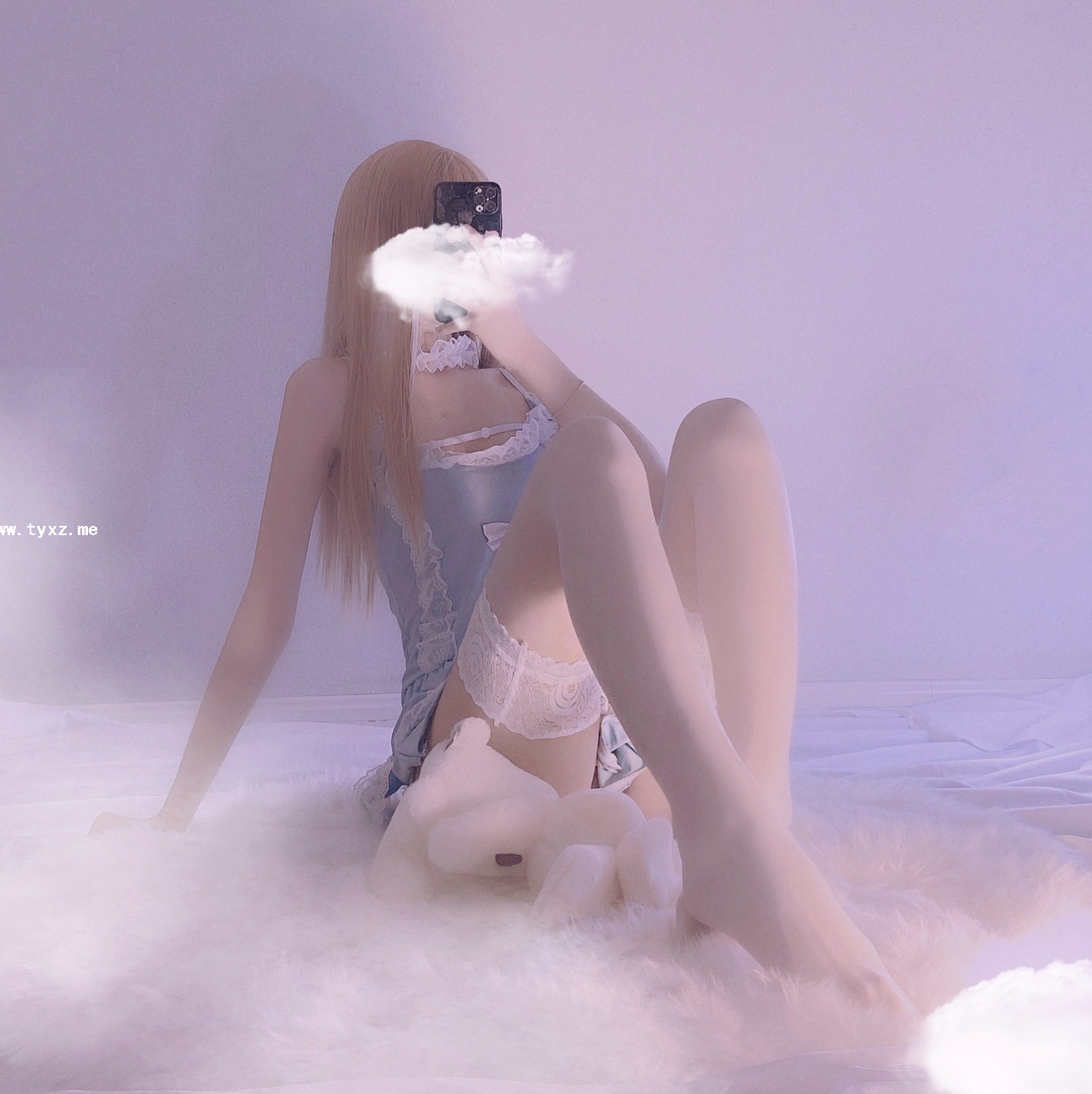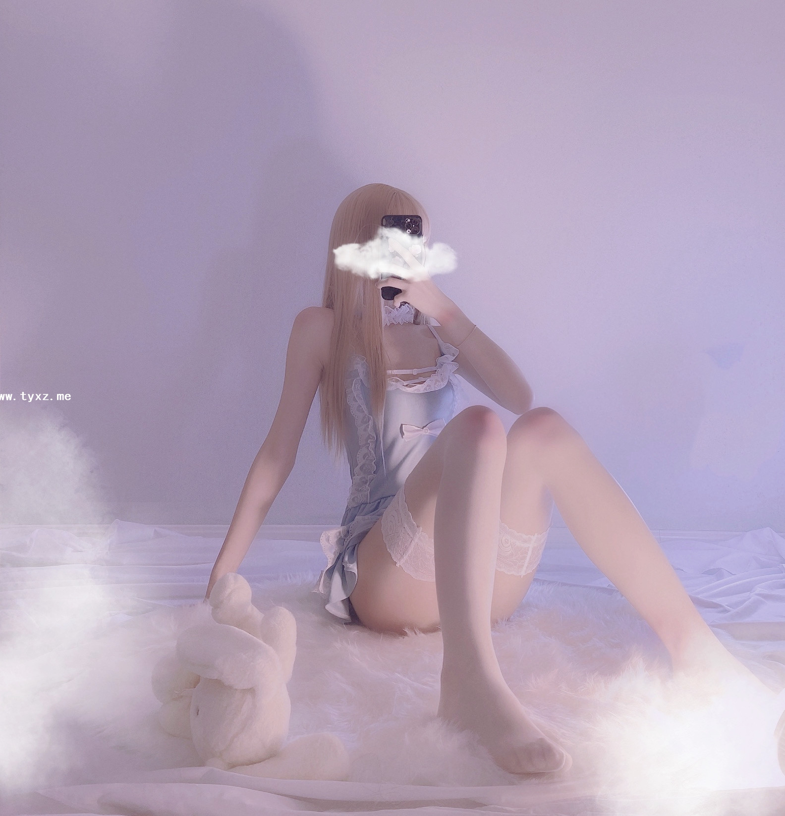 萌白酱福利—蓝色毛衣