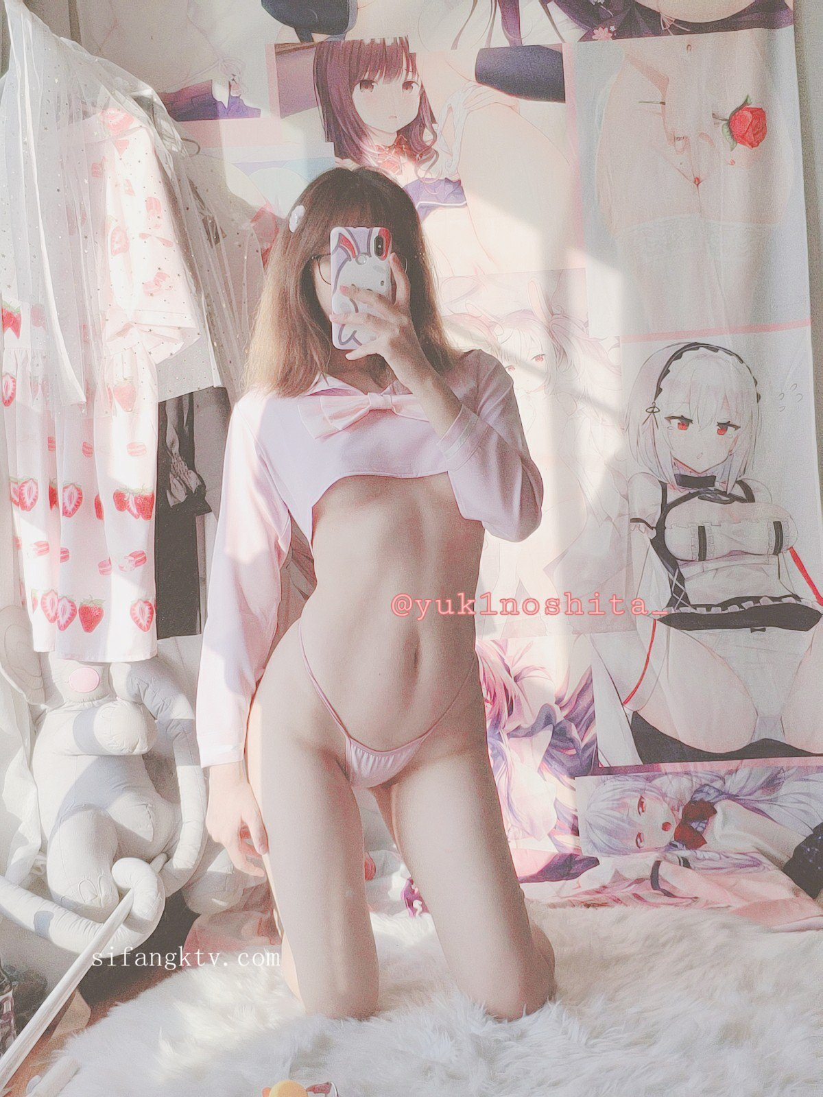 萌白酱福利—粉睡衣